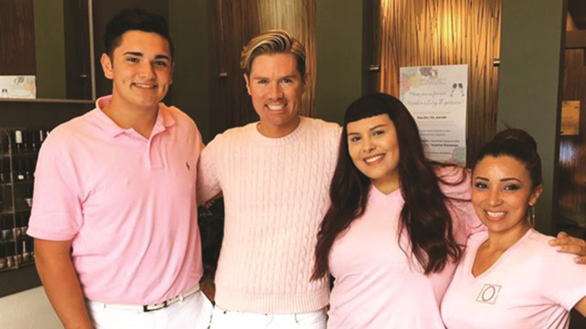 Chủ tiệm Thomas Kent Irwin (người thứ hai từ trái qua) và các nhân viên trong một sự kiện đặc biệt